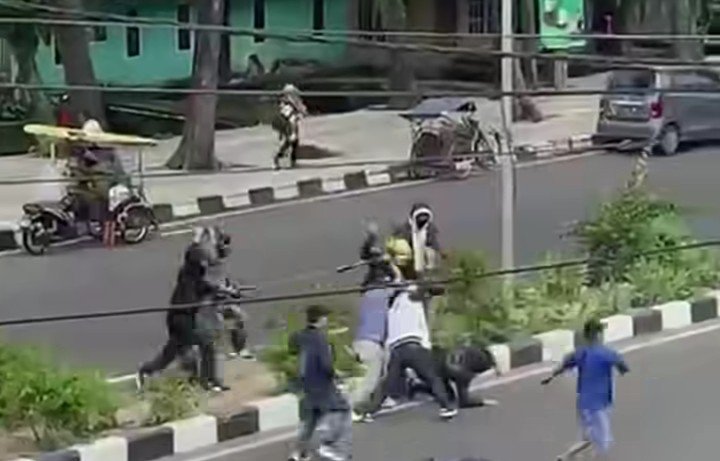 Palembang, mediasatu.co.id – Aksi bentrokan antar dua kelompok organisasi masyarakat pecah di depan Palembang Square Mall, Jalan Angkatan 45, Kota Palembang, Selasa (6/1/2026) siang. Peristiwa ini membuat pengunjung mal panik karena para pelaku saling menyerang menggunakan senjata tajam.