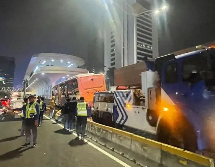 Jakarta Pusat, mediasatu.co.id – Kecelakaan terjadi di Halte Dukuh Atas arah Kota, Jakarta Pusat, Minggu (19/10/2025) malam, ketika sebuah bus Transjakarta koridor 1 (Blok M–Kota) menabrak bagian depan halte sekitar pukul 20.23 WIB. Kasubdit Gakkum Direktorat Lalu Lintas Polda Metro Jaya, AKBP Ojo Ruslani, menjelaskan bahwa bus dengan kode bodi MB 1616 yang Mayasari Bakti operasikan kehilangan kendali saat mendekati halte.