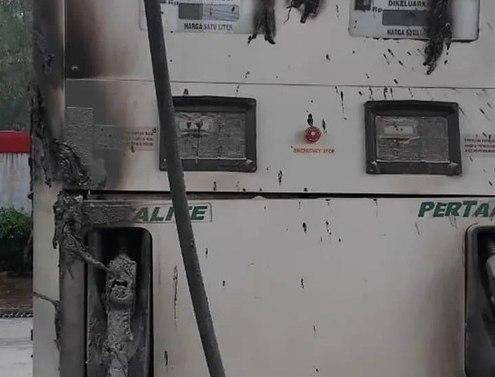 Sambaran petir yang mengenai bodi dispenser memicu percikan api karena kondisi area SPBU yang basah. Hal itu menimbulkan kobaran api kecil yang sempat menyala.