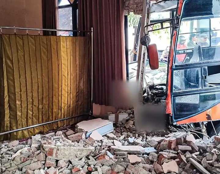 Bus dengan nomor polisi B 7388 FAA tersebut menghantam dinding masjid hingga menyebabkan kerusakan dan material bangunan berserakan di sekitar lokasi. Kasi Humas Polres Cimahi, Iptu Gofur Supangkat, mengatakan pihak kepolisian telah melakukan penanganan di lokasi kejadian.