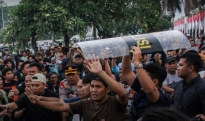 Jakarta, mediasatu.co.id – Aksi aparat kepolisian kembali melanggar kebebasan pers. Jurnalis foto Antara, Bayu Pratama Syahputra, menjadi korban pemukulan saat meliput demonstrasi di depan Gedung DPR, Jakarta Pusat, Senin (25/8/2025).