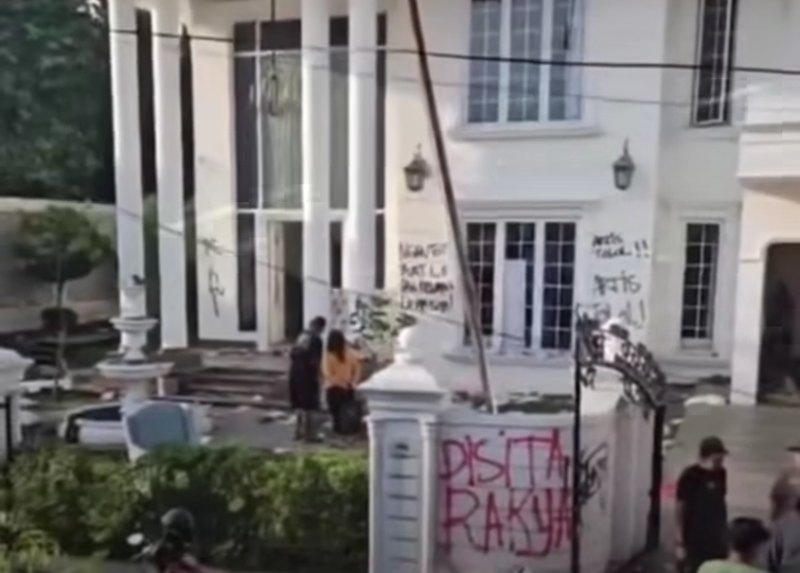 Sementara itu, rumah Menteri Keuangan Sri Mulyani di Bintaro, Tangerang Selatan, juga mengalami hal serupa. Massa memaksa masuk, menjarah isi rumah, dan meninggalkan kerusakan di berbagai sudut.