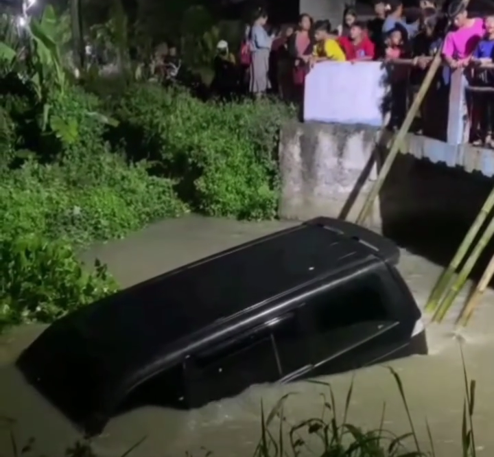 Bekasi, mediasatu.co.id – Sebuah minibus jenis APV berwarna hitam terperosok ke sungai saat melintas dari arah Babelan menuju Tarumajaya, Kabupaten Bekasi, Minggu (6/7/2025). Kendaraan tersebut baru saja membawa rombongan pulang dari acara piknik di Pantai Pakis, Karawang.