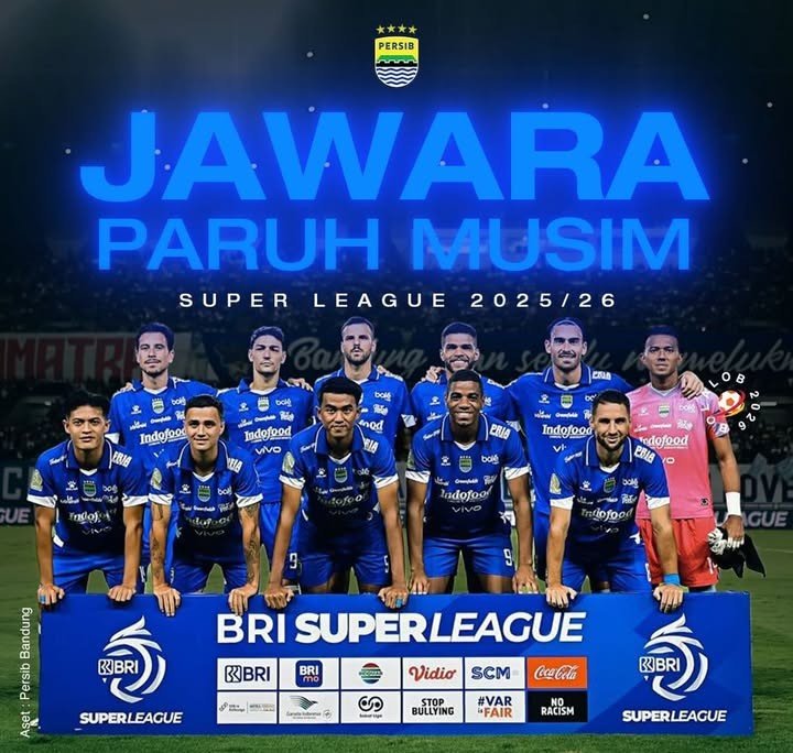 Bandung, mediasatu.co.id – Kemenangan atas Persija Jakarta memastikan Persib Bandung menjadi juara paruh musim Super League 2025/2026. Pertandingan yang berlangsung di Stadion Gelora Bandung Lautan Api (GBLA), Minggu (11/1/2026), berakhir dengan skor 1-0 untuk keunggulan tuan rumah.