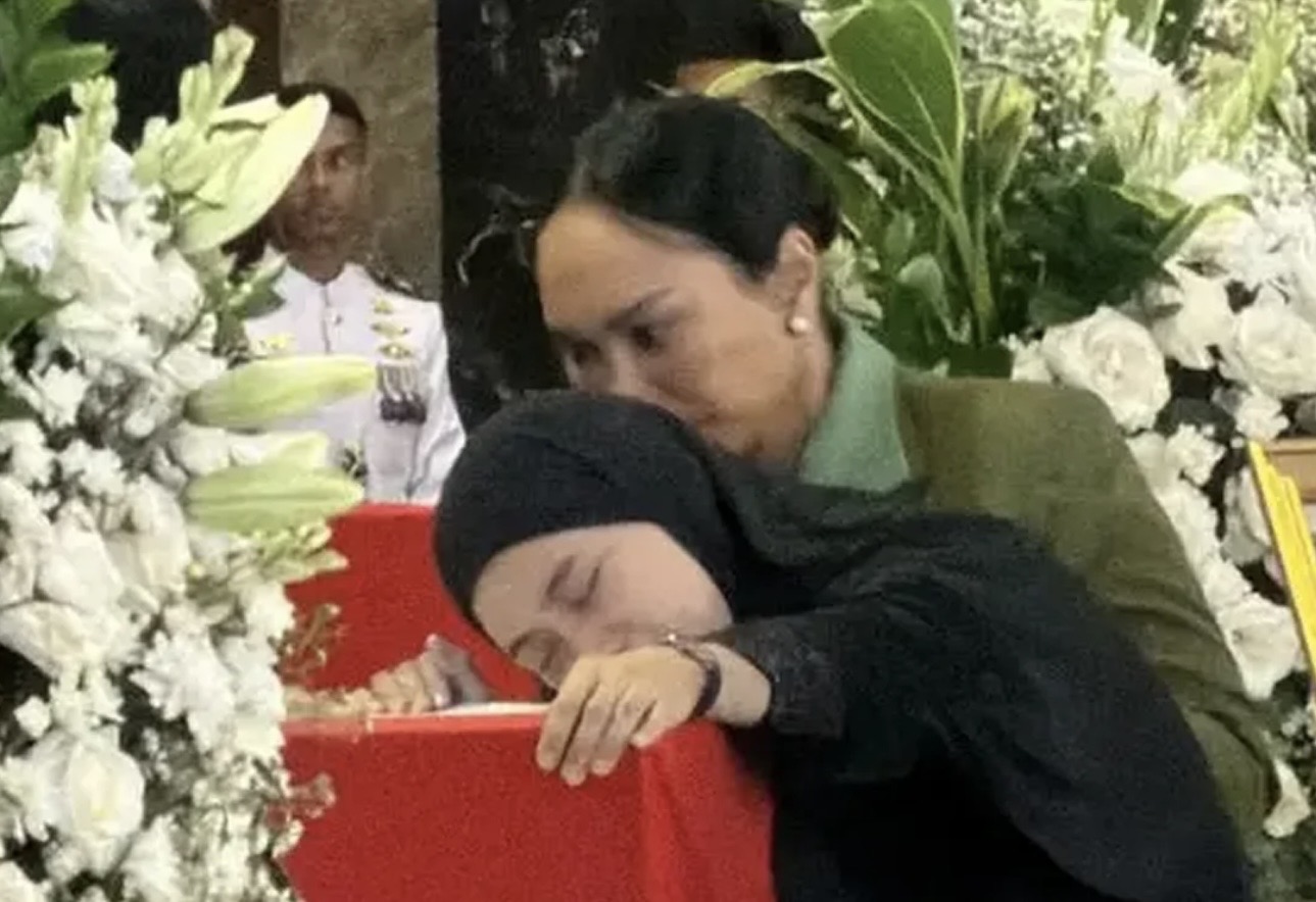 Presiden RI, Prabowo Subianto, hadir langsung untuk memberikan penghormatan terakhir serta menyampaikan duka cita kepada keluarga.