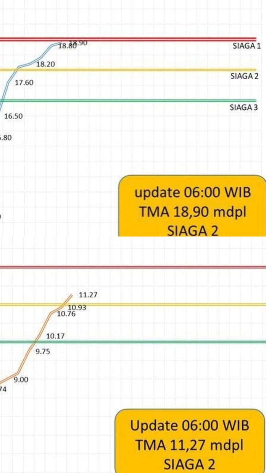 Karawang, mediasatu.co.id – Pada Minggu (18/1/2026), berdasarkan data terbaru yang tertera di akun Instagram Halokrw, TMA Sungai Citarum tercatat berada di 11,27 mdpl dengan status Siaga 2. Sementara TMA Sungai Cibeet terpantau mencapai 18,90 mdpl, juga dengan status Siaga 2. Di mana, informasi tersebut berasal dari Perum Jasa Tirta dan laporan lapangan dari SAR Bridgestone.